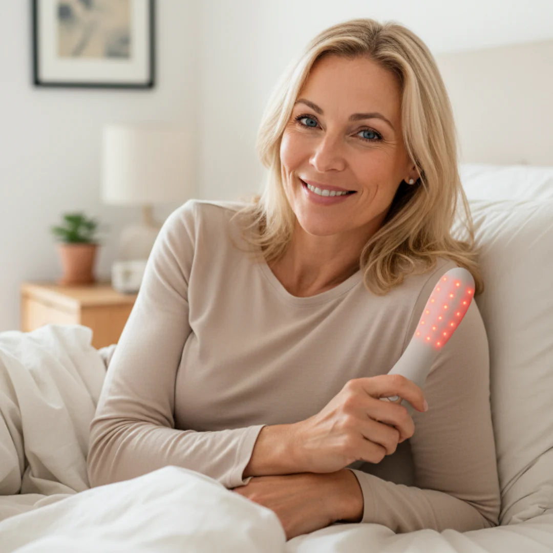 Das Gerät nutzt Licht, Wärme und Vibration – nicht Hormone –, um Ihre intime Gesundheit auf natürliche Weise wiederherzustellen.