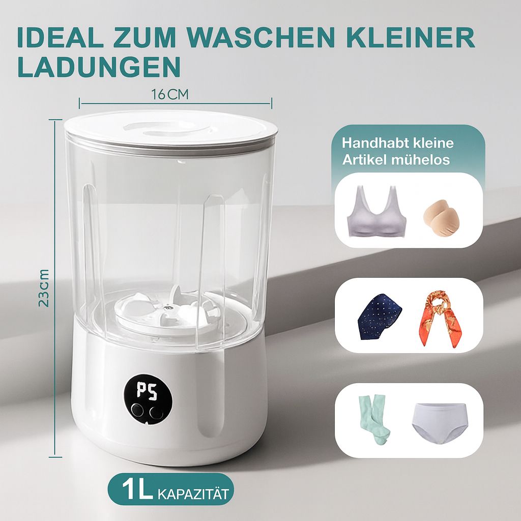 Kein ewiges Sammeln mehr, bis die große Waschmaschine voll ist. Besonders praktisch: Man kann sie einfach aufladen und überall benutzen. Absolute Empfehlung für alle, die alleine wohnen oder oft unterwegs sind!
